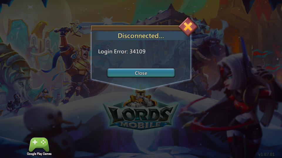 LORDS MOBILE – FIX LOGIN ERROR 34109
